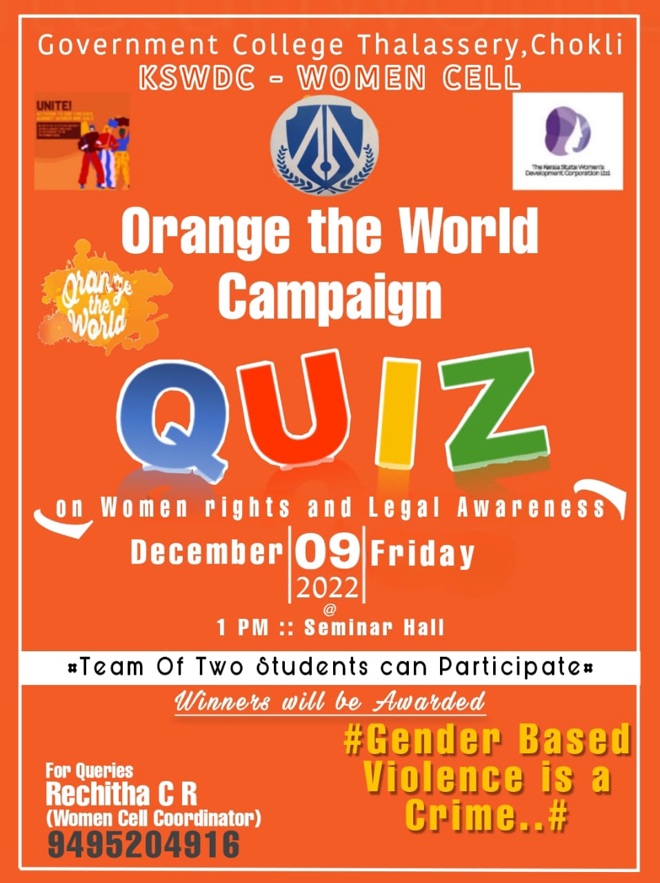 Women cell aims at making women aware of their rights and duties. It’s a solid platform for women to flourish. Women cell in colleges acts as an arena to retrieve the lost self also.
