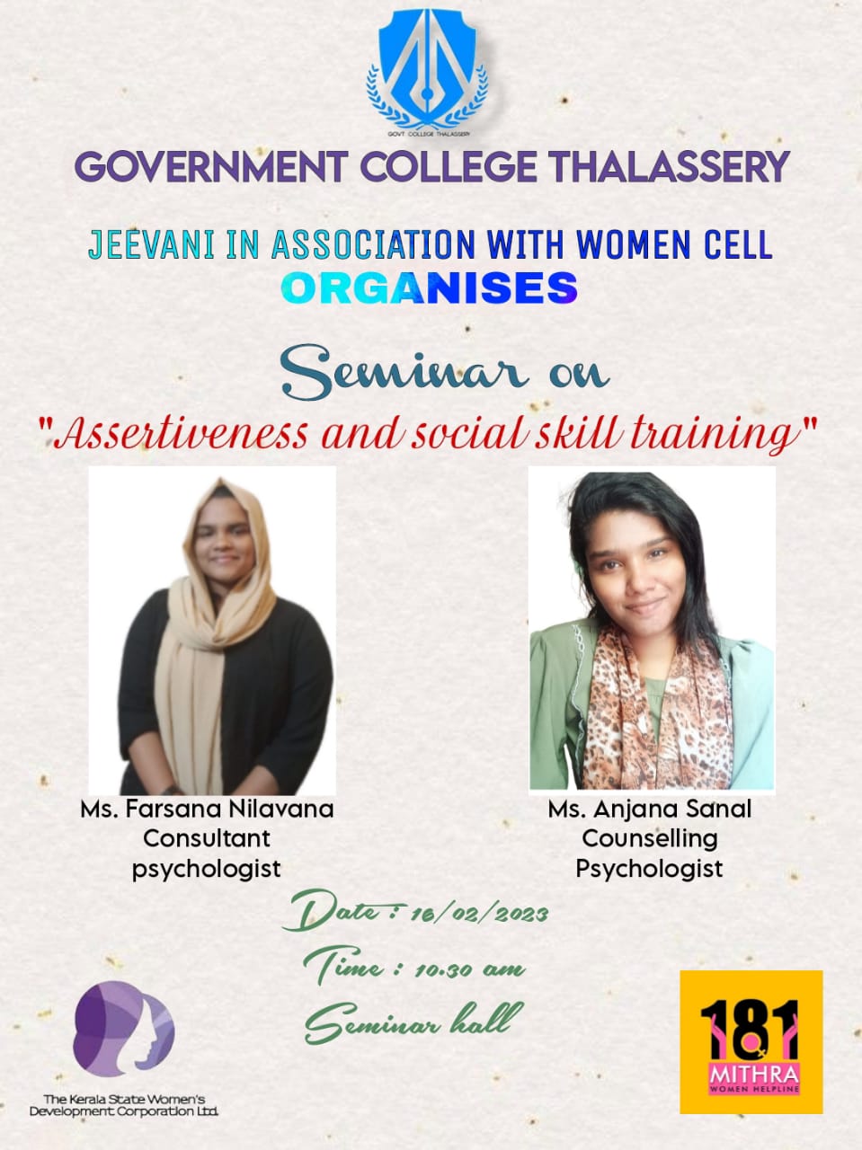 - To enhance the self-esteem and self-confidence among women students, faculty and staff in the college.